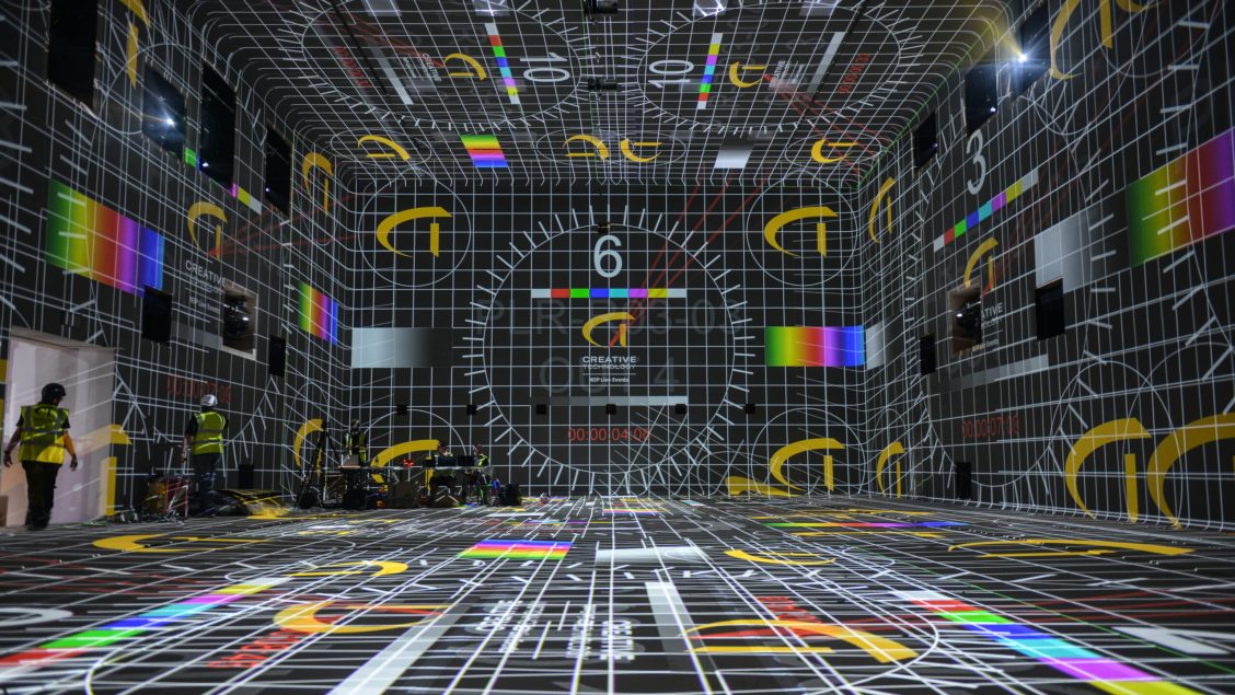 The wall projection is achieved using Panasonic RQ22K 3 Chip DLP projectors, delivering 20,000 lumens and 4K Quad Pixel Drive pixel shifting technology to provide native 4K enhanced resolution. For the floor projection, four Panasonic D3LEW200 90-degree short throw L lens projectors have been used. The room also has six Panasonic D3LEU100 zero offset UST lenses for the wall, along with two Sony A6000 / fisheye lenses for calibration, and Screenberry auto calibration for multi-projector setup.
